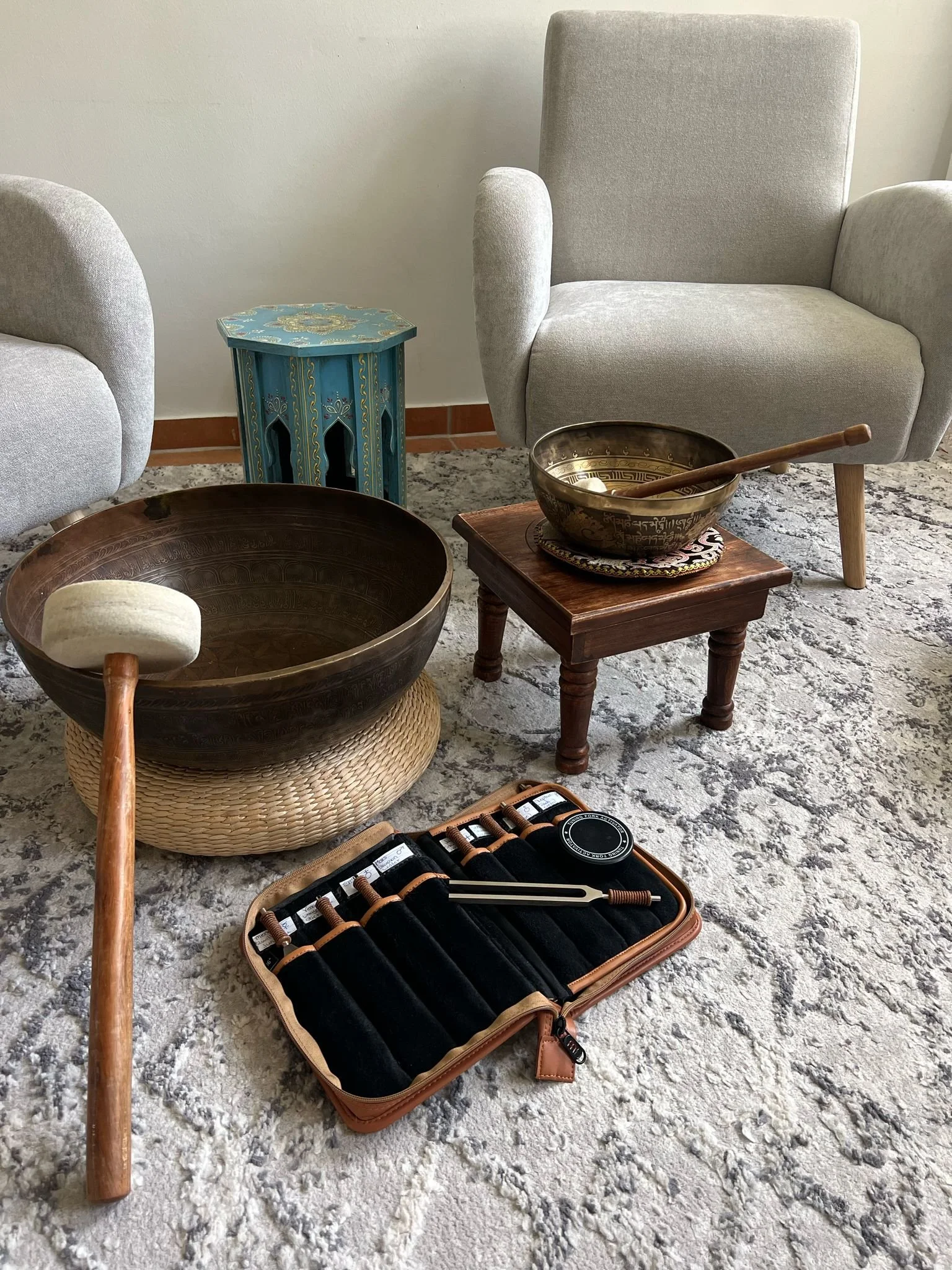 Schwingungen durch Ton, Klangschalen und Stimmgabeln <-